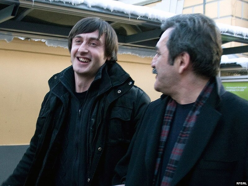 Адвокат Мурад Мусаев (слева) со своим подзащитным Джебраилом Махмудовым после оглашения вердикта присяжных