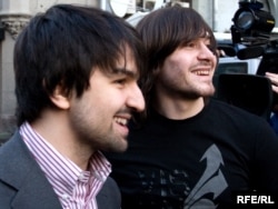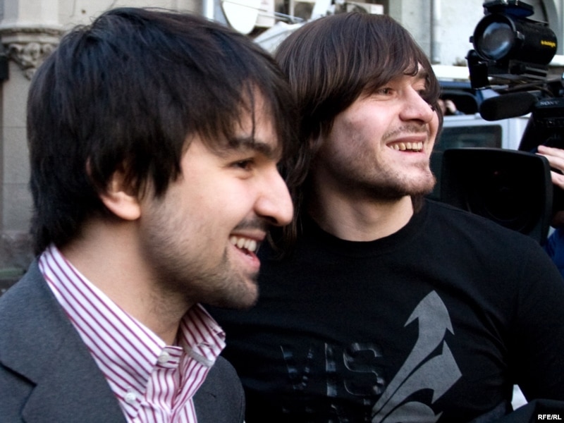 Братья Махмудовы выходят из здания Московского окружного военного суда