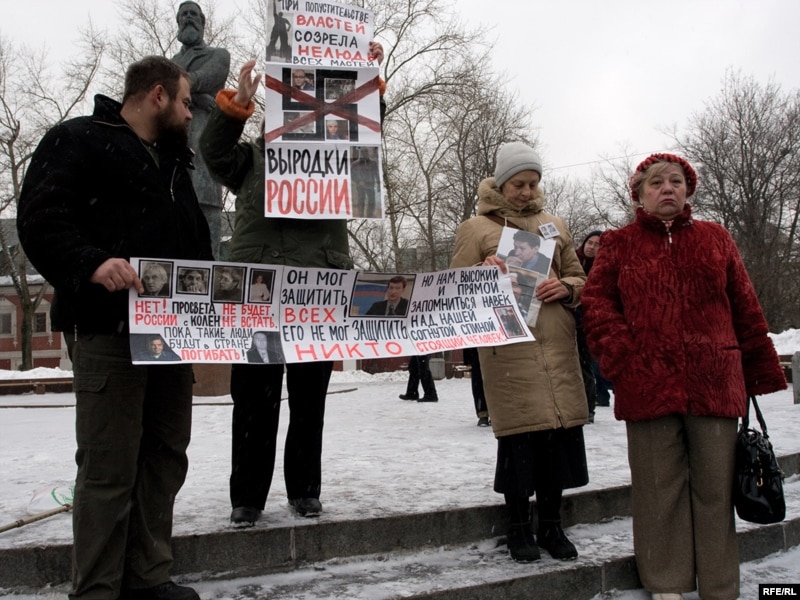 В Москве пикет оказался более многолюдным. Около сотни человек пришли к боярским палатам на Пречистенке, поскольку выстрелы прозвучали именно здесь. На древнюю каменную кладку устанавливали поминальные свечи, сюда же клали цветы, фотографии погибших и плакаты.