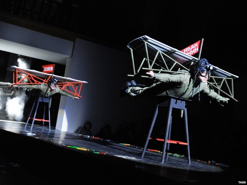 Если привести живые картинки Дмитрия Крымова к общему сюжетному знаменателю, получится так: "Жили-были красивые люди, сочиняли, искали смысл жизни. Потом пришли грубые красноармейцы. Одних постреляли, других вытолкали в эмиграцию, присвоили себе певца дворянских гнезд Антона Павловича Чехова, повадились самым мещанским образом праздновать его юбилеи".