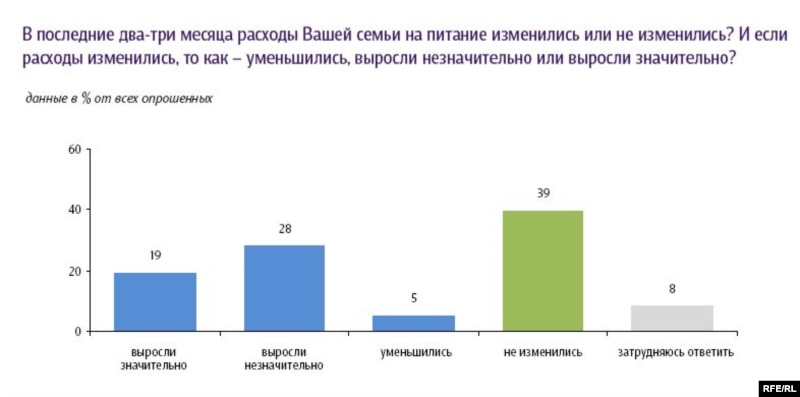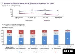Основная масса людей, около двух третей, отвечает, что они питаются так же, как и раньше, причем эта группа со временем растет: похоже, что ситуация несколько стабилизировалась. Количество тех, кто питается хуже, чем раньше, за последний год сократилось более чем вдвое.