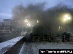 ОМОН отходит от бесчинствующей на крыше торгового центра толпы дальше. Несколько минут назад показалось, что будет штурм, бойцам ОМОНа удалось подойти к толпе ближе, однако в ответ в них полетели , пустые стеклянные бутылки. Толпа провоцирует омоновцев на нападение, криками "Давай-давай!". Горят дымовые шашки и подожженные пластиковые бутылки, которые заволакивают все вокруг черным дымом.