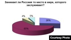 Что касается влияния на международной арене, то россяне считают, что на политическую ситуацию в мире страна оказывает влияние. Примерно 40 процентов при этом считают, что этого влияния явно недостаточно, или что Россия вовсе не оказывает никакого влияния в мире. Видно, что в оценке влиятельности России баланс противоречивых чувств и оценок довольно хрупкий, он постоянно меняется.