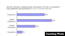 В прошлом году Россию потрясли громкие преступления в Краснодарском и Ставропольском краях, показавшие, насколько неблагополучна ситуация с преступностью в России. В связи с этим в одном из своих исследований социологическая компания «Башкирова и партнеры» попросила граждан страны оценить изменения в криминогенной обстановке за последние 2 года. Исследование проводилось по всероссийской репрезентативной выборке в форме личного интервью по месту жительства. Чуть более четверти респондентов, 28%, уверено заявили, что за это время криминогенная обстановка ухудшилась. 35% заявляют об этом чуть менее уверено, полагая, что она скорее ухудшилась, чем нет. 19% участников исследования разделяют несколько более позитивный взгляд на ситуацию, считая, что криминогенная обстановка скорее улучшилась, чем ухудшилась, и только 5% опрошенных не сомневаются в улучшении. При этом все россияне независимо от их пола, возраста или места проживания (город или село) воспринимают ситуацию скорее негативно.