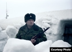 Дмитрий Волчек: Да, такой ритуальный мир – поклонение пограничному столбу с советским гербом, или празднование 9 мая с рукописным плакатом на стене и торжественным построением. Может быть, в какой-то большой военной части это и казалось бы нормальным, но когда все эти ритуалы исполняют шесть человек в маленьком домике среди льдов и снега…