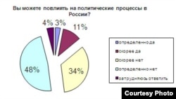 – Подавляющее большинство (свыше 80 процентов взрослого населения) уверены, что они на политические процессы повлиять не могут. И только процентов 12-14 считают, что в какой-то степени такое влияние возможно. Собственно, люди себе не представляют, что надо делать, чтобы быть активным участником политической жизни…