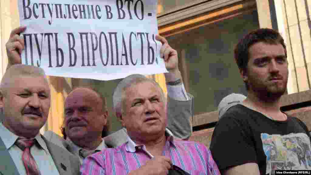 10 июля Госдума России рассматривает вопрос о ратификации протокола о присоединении России к Всемирной торговой организации (ВТО). Перед началом заседания коммунисты провели у Госдумы акцию протеста.