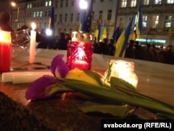Несколько тысяч человек вышли на Вацлавскую площадь столицы Чехии, чтобы выразить солидарность с украинским Майданом и почтить память погибших.
