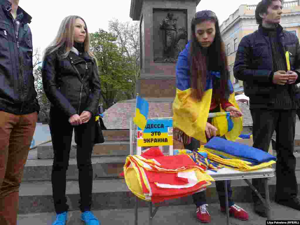 На Приморском бульваре, у памятника Дюку Ришелье - место встречи и митингов сторонников евроинтеграции Украины. Пророссийски настроенные граждане разбили палаточный лагерь на площади Куликово поле у здания областной администрации