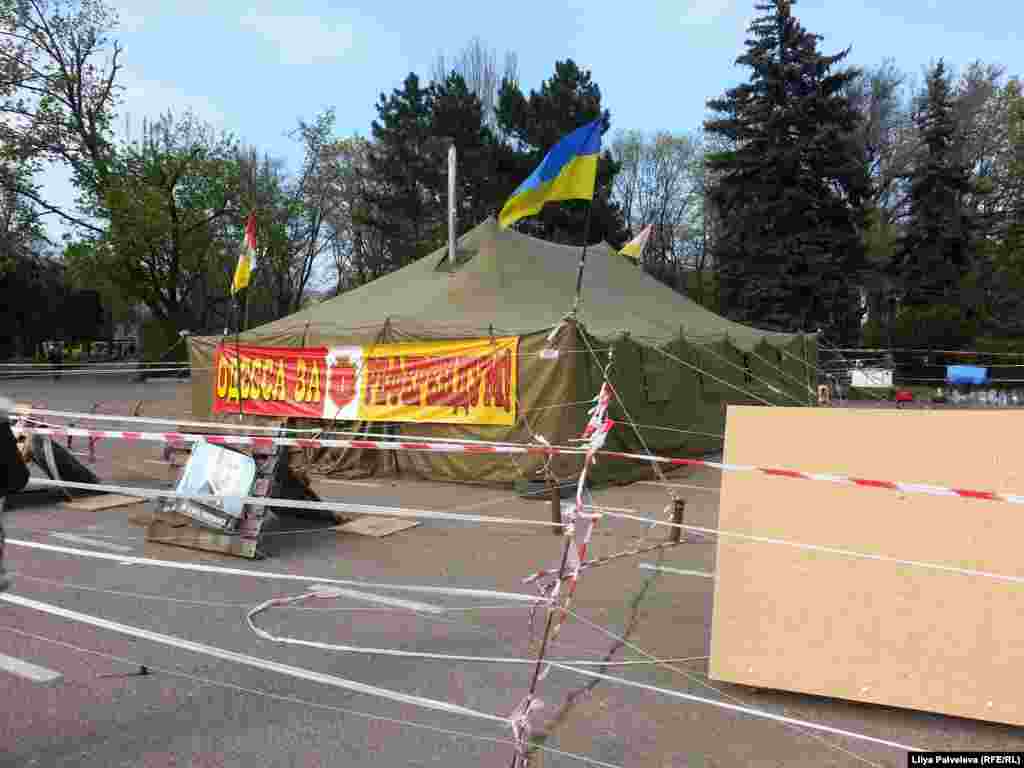 На Приморском бульваре, у памятника Дюку Ришелье - место встречи и митингов сторонников евроинтеграции Украины. Пророссийски настроенные граждане разбили палаточный лагерь на площади Куликово поле у здания областной администрации