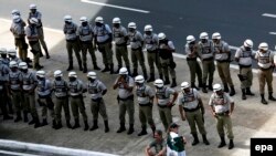 В бразильском городе Куритиб более 200 человек приняли участие в акции протеста против проведения чемпионата мира по футболу. В понедельник перед матчем между сборными Ирана и Нигерии демонстранты перегородили дороги, жгли мусорные контейнеры и мешали движению автобусов с болельщиками. В центре города люди в масках били окна отделений банков и магазинов. В ответ на это бразильская полиция применила резиновые пули и слезоточивый газ. 14 человек задержаны.