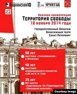 Виктор Резунков: 10 ноября в Эрмитаже, точнее в Эрмитажном театре, пожалуй, впервые в истории Петербурга собралось огромное количество пожилых импозантных мужчин, художников. Здесь проходила научная конференция «Территория Свободы», посвященная сразу трем юбилеям: 50-летию «выставки такелажников» в Галерее Растрелли Эрмитажа, 40-летию выставки неофициального искусства в ДК им. И. И. Газа и 25-летию со дня создания Арт-центра «Пушкинская, 10» (Товарищества «Свободная культура»). Эти события арт-общественность признает тремя важными вехами в утверждении нонконформистского, свободного искусства в советском Ленинграде и постперестроечном Санкт-Петербурге.