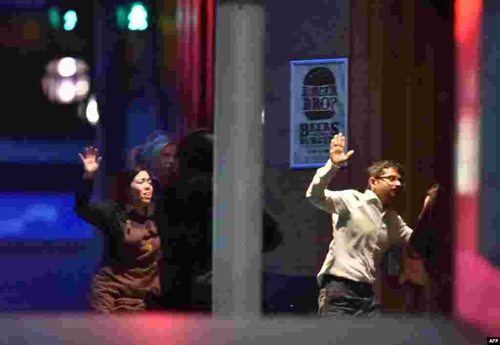 Люди, находившиеся в заложниках в сиднейском кафе Lindt - кадр, снятый телеканалом Channel 7 News