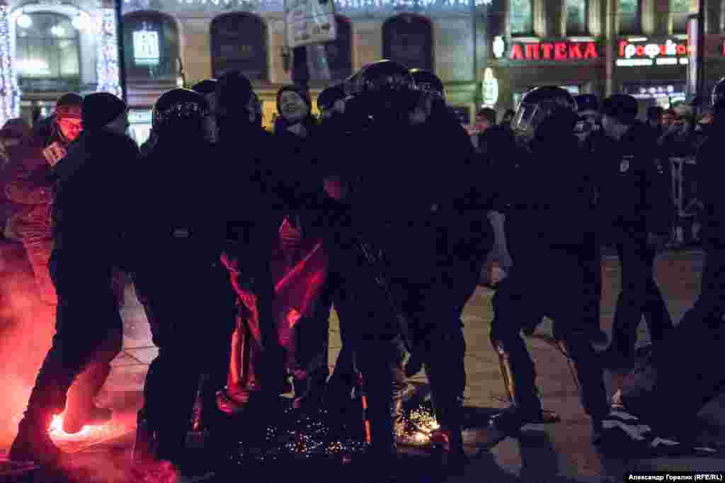 Акция была несогласованной, традиционное место сбора (так называемая площадь Свободы у Гостиного двора) было блокировано значительными силами полиции и ограждено забором, здесь же было организовано альтернативное мероприятие молодежи из сети клубов "Перспектива". Несколько активистов "Стратегии" перелезли через растяжку и зажгли файеры, после чего были задержаны сотрудниками полиции.