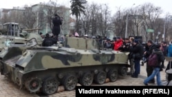 В субботу, 21 февраля, на Михайловской площади в центре украинской столицы по инициативе главы государства Петра Порошенко открылась выставка под названием "Присутствие". Экспонаты для нее предоставили Министерство обороны, Министерство внутренних дел, Служба безопасности, Национальная гвардия, Государственная пограничная служба и Государственная служба по чрезвычайным ситуациям.