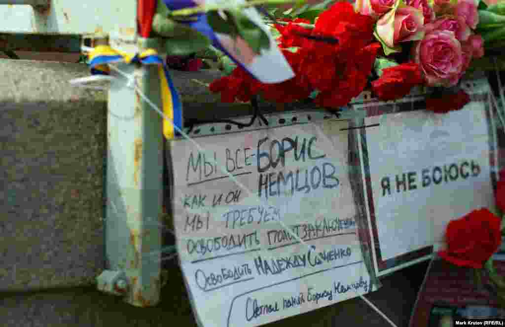 В ночь с 27 на 28 марта в Москве неизвестные уничтожили импровизированный мемориал на месте убийства оппозиционного политика Бориса Немцова, на Большом Москворецком мосту. На нескольких автомобилях они вывезли все цветы, плакаты, свечи. Но уже к полудню субботы мемориал был восстановлен: люди несли свежие тюльпаны и гвоздики к месту гибели Немцова с раннего утра. Это второй подобный случай: в ночь с 24 на 25 марта мемориал памяти Немцова разгромили активисты одного из прокремлевских движений.