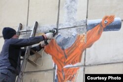 Уничтожение "распятого Гагарина". Фото Максима Кимерлинга
