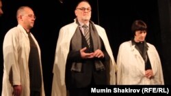 Елена Фанайлова: Я бы хотела посмотреть фрагмент спектакля, который является частью программы "Москва Шаламова". Это спектакль по пьесе Шаламова "Анна Ивановна", поставленный студией "Театр" Алексей Левицкого. И это один из центральных моментов пьесы, где доктор пытается отдать Анне Ивановне, буфетчице, которая должна выехать на Большую землю, свои рукописи. Из-за этого эпизода все закончится очень плохо, но сам эпизод, конечно, вполне себе трагикомический носит характер…