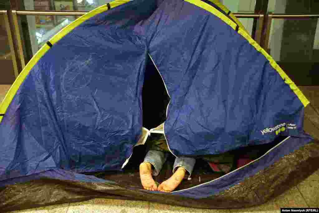 В последнем случае они пережидают время в раскинутых здесь же и в переходе станции метро палатках.