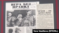 На стенде, посвященном штурму Грозного с 30 декабря 1994 по 4 января1995 года, в центре – большой газетный разворот "Новогодняя карусель". Это разбор событий от имени очевидца. Вообще, свидетельства очевидцев занимают главенствующее место на выставке. Командир танковой роты говорит очень подробно, некоторые фрагменты его рассказа выделены желтым, например: "Когда они собрали нас на совещание перед штурмом, я понял, что они сами не очень верят в то, что говорят".