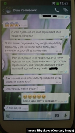 "Ты договорилась по экспертизе?" – спрашивает 14 января 2015 года Баряеву ее коллега, следователь Юлия Калмычек.