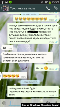 "Нель, щас еду и думаю, если эксп будет на стороне фила, то не будут ли мои действия расцениваться как незаконное содержание под стражей?" – спрашивает она Тростянскую 16 февраля 2015 года.