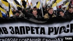 Шествие националистов "Русский марш", которое проводилось 4 ноября уже в 12-й раз, прошло в этом году под лозунгами, направленными против российских властей.