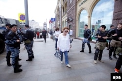 На Тверской задержан еще один человек, сообщает корреспондент Радио Свобода.