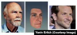 Предсказание внешности на основе ДНК – лишь вопрос времени. Практически все человеческие черты и особенности физиологии в большей или меньшей степени определяются генами (например, цвет глаз – на 98 процентов, индекс массы тела – на величину от 50 до 93 процентов), и рано или поздно с помощью компьютерного анализа больших массивов ДНК и данных об их носителях связь между генами и строением лица, ростом, голосом и другими чертами будет установлена. Возможно, это будет сделано с помощью библиотек, собранных коммерческими компаниями, такими как Human Longevity Крэга Вентера. Но пока этот безусловно талантливый авантюрист, похоже, снова поторопился. Посмотрите на забавный коллаж, сделанный Янивом Эрлихом. Слева – лицо самого Вентера, в центре – сделанное алгоритмом на основе его ДНК предсказание, а справа – актер Брэдли Купер. На кого фоторобот похож больше?
