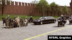 Патриарх Кирилл обличил "ересь человекопоклонничества", которую пытаются насадить враги "русского мира". И вот ересь искоренена: 6 мая 2012 года в день инаугурации Владимира Путина кортеж президента едет по совершенно пустой Москве, зачищенной ФСО, – на улицах нет ни единого человека.
