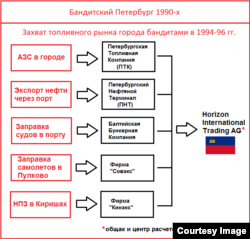 Или приватизация топливных активов в Петербурге в 1990-е. Это же гангстерский сериал был. С тамбовской ОПГ Петербурга в главной роли, и с участием Путина тоже. На Радио Свобода в свое время была целая серия публикаций про фирму “Совэкс”. В 1996 году ей отдали заправочный комплекс для самолетов в Пулково (распоряжением Путина). Эта же фирма участвовала и в создании Петербургского нефтяного терминала (ПНТ) в 1995 году. Это канал вывоза нефтепродуктов через порт Петербурга. Это все лакомые куски, очень доходные места.