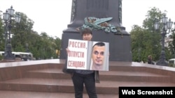 На Пушкинской площади в Москве в субботу прошла серия одиночных пикетов с призывом освободить украинского режиссера Олега Сенцова, который объявил голодовку в российской колонии.