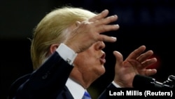 Но когда в понедельник на мероприятии для прессы журналисты стали спрашивать его, что он может сказать по поводу смерти сенатора, Дональд Трамп сидел молча, нахмурившись и сложив руки на груди.