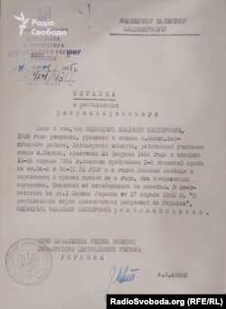 Но в 1995 году Виктор Медведчук еще не был депутатом Верховной рады. Более того, он не забрал справку о реабилитации, а лишь в 2000 году из архива СБУ лично забрал паспорт, аттестат и медицинские справки отца.