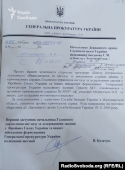 Среди 825 страниц трех томов архивно-следственного дела, в котором фигурирует Владимир Медведчук, есть и два довольно интересных документа. Первый – датированный 2005 годом – обращение Генеральной прокуратуры Украины к Отраслевому государственному архиву СБУ. В нем полковник Козачук просит архивистов предоставить возможность представителю ГПУ ознакомиться с этими материалами "для формирования мотивированного вывода". Второй – обращение представителей второго и пятого управлений КГБ СССР в 1981 и 1986 годах.
