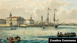 (Одна из вмёрзших в мою память картинок блокадного детства – зимняя экспедиция за водой на эту прорубь. Водопровод замёрз в яркий солнечный день необычайной красоты, потому что город заиндевел – все здания, все дворцы, все ажурные решётки. Меня посадили на санки, я обняла руками и ногами два вставленных друг в друга пустых ведра, мама крикнула: "Н-но, мёртвые!", очень меня этим насмешив, и пустилась в галоп. Ей ведь тогда было всего 25 лет. Прикатили на набережную. Там толпился и переговаривался народ. Я, было, обрадовалась, но, увы, возбуждение было паническим – гранитные ступени обледенели, и спускаться к проруби стало почти невозможно. Одна закутанная фигура уже лежала у парапета и так странно, неестественно шевелилась, что хотелось, чтобы она наконец застыла. Мама и еще две молодые женщины, тоже в серых ватниках, образовали недлинную цепочку до проруби. Я подавала им пустые вёдра. Вот мама в белой ушанке наклоняется над чёрной, чёрной водой полыньи, опускает ведро, наполняясь, оно тянет её вниз... Помню напряжение, с которым я сверху смотрела на сиреневые сцепившиеся пальцы: "Господи! Спаси и помилуй, не дай им расцепиться!" Одна закутанная попросила набрать и ей воды. Эта просьба вызвала во мне кулацкую ярость, но женщина, стоявшая наверху, решительно мотнула головой, и я вздохнула с облегчением. Наконец напарницы стали тянуть маму. Один раз она поскользнулась, я инстинктивно сделала шаг вперёд и услышала хриплый, неузнаваемый крик: "Назад! Сейчас же! От края!" Потом все три, сидя на санках, курили "козьи ножки". Один закутанный, единственный из всех, пытался ломиком очистить ступени, слабо постукивая по мощной наледи. Я глазела на слепящие осколки, опиралась на ватную мамину спину, слушала негромкие прокуренные голоса женщин, и счастье моё было таким острым!..)