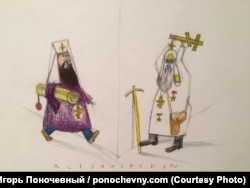 "Эту картинку я нарисовал к последнему приезду Александра Лукашенко в Москву, когда стало ясно, что у него начались проблемы в связи с решением российского правительства повысить цены на нефть и газ для Белоруссии, и Лукашенко приехал к Путину договариваться".