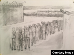 Студентка, которая приехала из Казахстана домой в Китай на каникулы и была отправлена на "перевоспитание" на 6,5 месяцев. Сделала серию рисунков о лагерях "перевоспитания". Пожелала остаться анонимной.