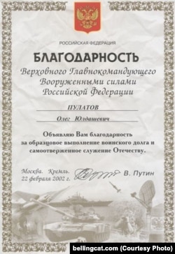 В одном из сообщений Халиф опубликовал фрагмент личной переписки с Плохим солдатом, в котором тот обращался к нему по имени – Олег. Позже эта информация была подхвачена администратором еще одного форума, "Русское отечество". Фотографии Пулатова-Гюрзы нашлись на сайте Киевского высшего общевойскового командного училища, которое он закончил в 1990 году. Там же опубликована копия благодарственной грамоты, выданной Пулатову "За образцовое выполнение воинского долга и самоотверженное служение отечеству" президентом России Владимиром Путиным в феврале 2002 года.