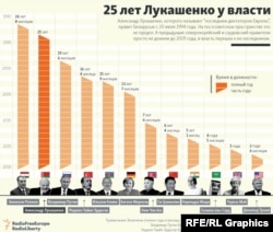 За 25 лет его президентства в стране бесследно исчезали оппозиционеры, сотни людей, в том числе кандидаты в президенты, становились политзаключёнными, население Беларуси сократилось на 5 процентов, Лукашенко ругался с Западом, боролся с прессой, построил президентскую вертикаль власти и подписывал многочисленные интеграционные соглашения с Россией.