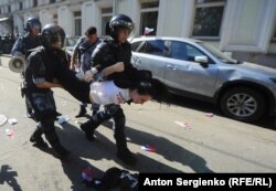 Еще несколько фотографий жестких задержаний сегодня от корреспондента Радио Свобода