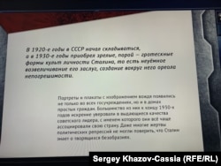Репрессии достаточно подробно представлены на выставке, отдельный стенд посвящён культу личности Сталина, но ни репрессии, ни культ личности не выведены на первый план. "Выставки содержат очень много информации, это тысячи страниц текста, который весьма умно скомпонован. Если ты хочешь найти что-то про репрессии, про опричнину, про коллективизацию, ты это найдёшь. И если ты придёшь к ним с претензией, то они скажут: "Вот же, всё есть". Но если ты придёшь просто как посетитель, то тебе такие сюжеты, скорее всего, в глаза не бросятся, – говорит Клименко. – Там панно на стенах, на них картинки и слоганы. Воспринимаются слоганы в первую очередь. Ты заходишь в зал Александра Невского, и там огромное панно с его изображением и написано: "Крепить оборону на западе, друзей искать на востоке". Ты можешь ничего больше не читать про Невского, но слоган ты увидишь".