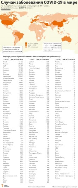 Распространение коронавируса в мире, свежая инфографика
