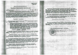Через паспортно-регистрационный отдел Управления Милиции гор. Ленинграда оформить регистрацию смерти гр.Петрова Ивана Петровича, указав, что он умер в местах заключения 2/2 – 1943 года от перитонита, о чем сообщить родственникам осужденного и произвести отметки в 1-х спецотделах МВД СССР и УВД Ленинградской области.