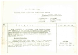 Дело №103007-37 г. Оперативной части Соловецкой тюрьмы ГУГБ НКВД СССР на 182 человека, осужденных на разные сроки за к.-р. троцкистскую , террористическо-шпионскую деятельность, которые, оставаясь на прежних к.-р. позициях, продолжают вести среди осужденных к.-р. троцкистскую работу и высказывают террористические намерения (протокол №82 от 9 октября 1937).