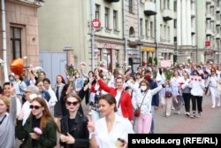 На улицы Минска вновь вышли женщины в знак протеста против насилия.