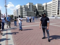 На площадь Победы в Витебске пришли художники, медики, железнодорожники. Железнодорожники скандировали: "Забастовка!"