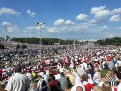 Десятки тысяч людей собрались около стелы "Минск – город-герой" и в ее окрестностях.