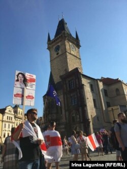 В столице Чехии Праге состоялась акция в поддержку белорусской оппозиции, требующей отставки президента Александра Лукашенко и проведения честных выборов.