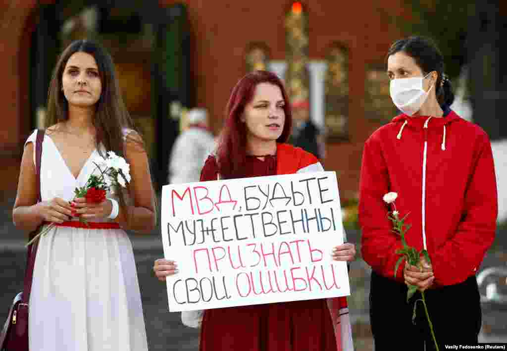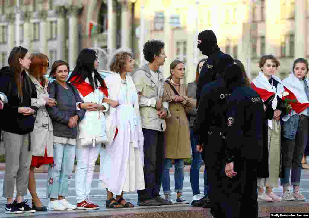 На площади перед Красной церковью люди выстроились "цепочкой солидарности". Фотогалерея Белорусской службы Радио Свобода
